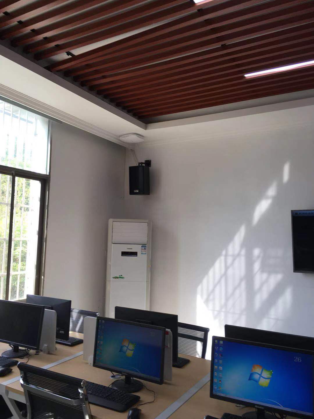 音箱選用F系列專業(yè)音箱一對,該款專業(yè)音箱低音彈性好,力度足,人聲頻帶寬、中高音清晰亮度好,適合多媒體教室內(nèi)黑板兩側(cè)壁掛式安裝,造型典雅別致,與教室環(huán)境完美融合。